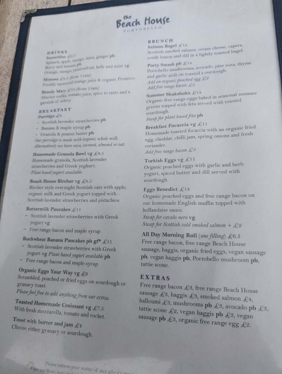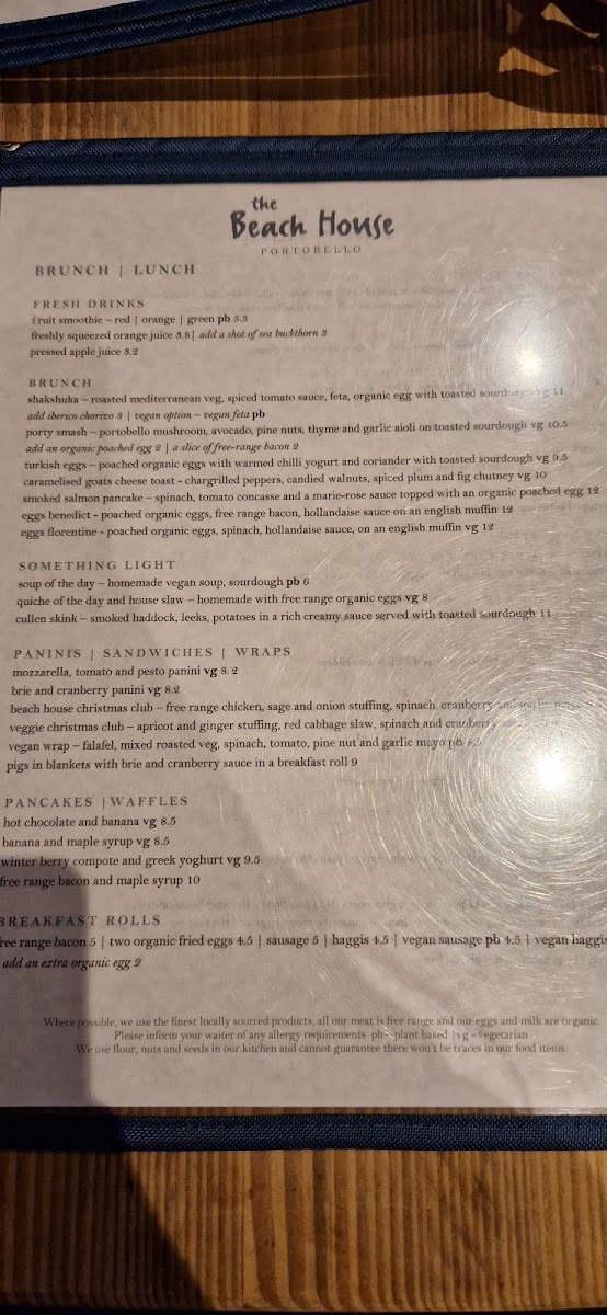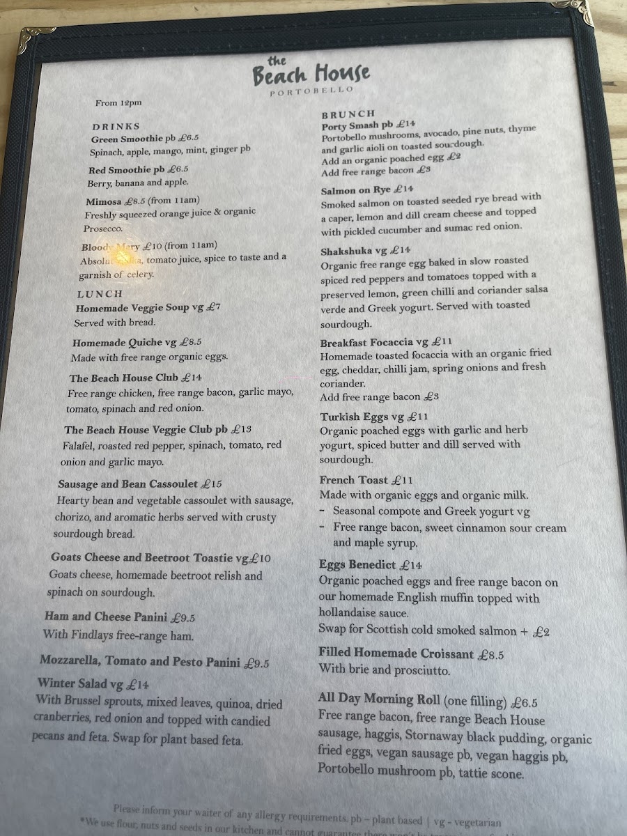 Welcome to The Beach House, a delightful café nestled in Portobello, Edinburgh, that captures the essence of seaside dining. Here, you can indulge in a vibrant menu featuring fluffy pancakes topped with hot chocolate and banana, or savor the richness of free-range bacon and maple syrup. For those seeking lighter fare, the butternut squash soup and fresh salads offer a comforting touch.